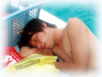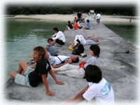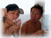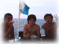 ハエ騒動勃発っ! ・・・何で船の上にハエがいるんだぁ・・・。とハエ退治合戦。みんなハエを捕まえて海に飛び込むっ!!の巻。このランチタイム・・。誰か船から転げ落ちちゃうんじゃないか・・・と思うくらいオナカを抱えてミンナで笑った・・・・。笑いすぎで、超おなかいたーーーい・・・。