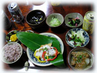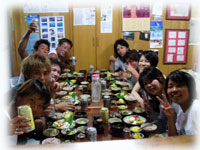 夕飯。おいしーい島料理のゴハンをミンナで頂きます。