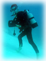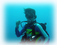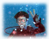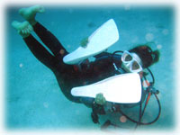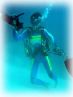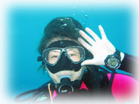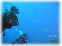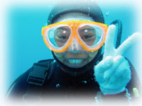 タカハタさんは、安全停止中、「後二分だよー」と教えてくれるバディーのヤタベさんに、「ピースっ!」されていると思い、おもむろにカメラを取り出しシャッターを切ったのでした・・・。ヤタベさん、目が点。
