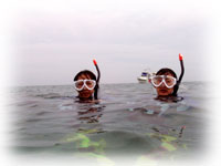シュノーケラーのお二人も、キミチャンと浅瀬で楽しみました。