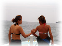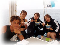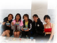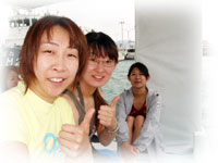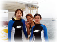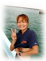今日のゲストは、シュノーリングでお申し込みのカメヤマさんとタケダさん。そして、きのうに引き続きモンマさん、ヤマシタさんコンビ。そしてスミコさん。朝到着のチャコちゃんを迎えに行くため、ワタシは空港へ。そしてバナナ号には、上記の5人とそしてヘルプで来てくれたインストラクター、キミチャンとウチノヒトとまずは朝一番で出航〜。