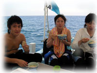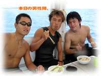 今日は、にぎやか満員6名のゲストっ!! そしてスタッフ増員っ! かっくいいマッシーが来てくれました。今日のゲストは、1月のオープン前の寒いときに来てくれたチャコちゃん、そしてイダチンのお二人。そしてワタシの実家と超近い総持寺からやってきてくれた一人旅ミヤヅさん。そしてブランクが不安なお二人ミヤザキさんとソネさん。そしてそして白一点のサトウさんっ←ハレオトコっ!! みんなを乗せて黒島へGOGO!!