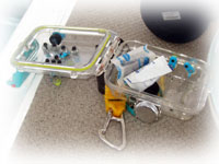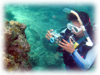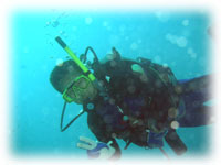 聞くと・・どうやらシリカゲルを挟んでいたらしい・・。でも、ずーーと1時間弱撮っていたけど・・。多分浮上時、水圧が低くなったと同時に、ドッと水が入って来たのかも・・。慌てて、エアーガンで中を吹いたけれど・・・・・・起動せず・・・・・。がーーーん。って、ワタシ以上にショックを受けるはずの本人・・。けろりとしてる。夜勤で頭が回っていないのかも・・と本人。