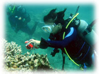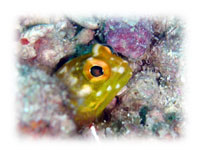 今日はハマサンゴの下でアカククリタチが群れて集会中・・。 |