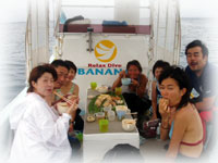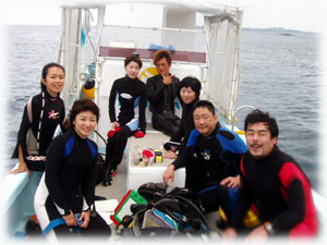 なんだかとっても仲のいい、方々です。一緒にダイビングする仲間は、年齢も職業も、いろんな背景も関係なく気さくにつきあえる仲間になれるのが楽しい〜。ほんとうらやましいくらいでした・・・。