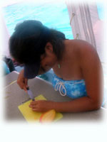 ピーカンの今日。波も少し落ちる予想。今日は、黒島へ〜っ!! 最近、透明度がとってもいいらしく、ワタシも行きたい・・・が、今日は、マッシーにヘルプをお願いしてお留守番。お店には、やらなけれはならないコトがてんこもり・・・。今日のゲストさんは、きのうに引き続きのサチコさん、ユキエさん、ツシマさん。そして地元ナース(水没ナースの方が有名??)のサトコちゃん、それからヒロミさんとマサミさんの計6名満員御礼でーーす。
