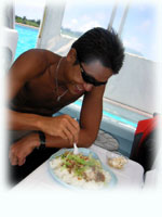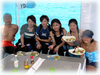 ログ付けの話を聞いてたら、 「透明度が40mくらいっすかぁ・・」 「きれいだったねぇ・・」 「潜ってるだけで気持ちよかった・・」云々〜。