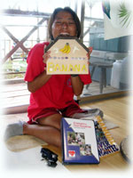 で、ユッカちゃん、ビーチコーミングで集めたサンゴなどでバナナの看板を作ってくれましたぁ〜。 そう ・・・、バナナにはまだ看板が出来てないのです・・。うれしいデス。。
