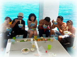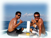 三日間潜って頂き、今日は最終日でお二人ともお別れ・・・。と言うことで、串屋でゴハンしてきました。本当に今時、こんなに実直でステキな青年がいるのねー・・とうれしくなるようなさわやかなお二人でした。一年のウチほとんどダウンしたりしないワタシはかなり久しぶりにカラダの調子を崩してしまいましたが、まさにゲストからパワーを頂いたカンジでした。人からゲンキをもらうことで、回復してきた気がシマス。ありがとう。