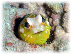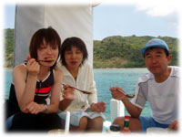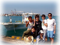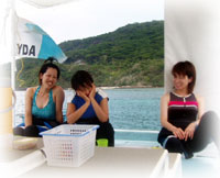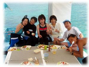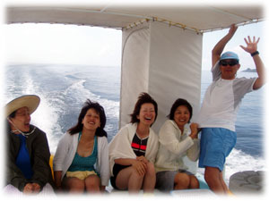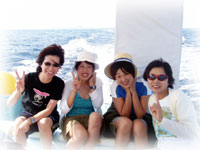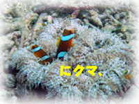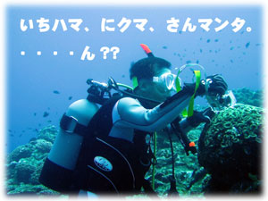 今日もベタナギ。むふふな天気。ゲストは、きのう黒島を堪能した3名のメンバー(コダマご夫妻とリツコさん)が引き続き参加、、そしてブランクダイバーなヨウコさん、体験ダイバーなケイコさんの計5名で出航です。。「昨日のログ付けで覚えたコトバ・・一ハマ、二クマ、三カクレっ!」今日のBANANA船上で、超流行中・・。。。