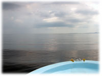 マンタを全員が見れて、満足の帰港の途中・・・・ およよ・・・。真っ黒な雲とともにスコールがやってきたぁ・・ 島がなんにも見えなくなる・・。