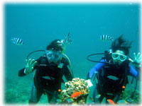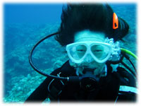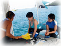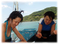 ポイントに到着して、体験のケイコさんにはシュノーケルのブリーフィング。ブランクダイバーなヨウコサンは、一本目はマンタに備えて、ケイコサンと一緒にリハビリダイブを選びました・・。。担当は、ワタシです。