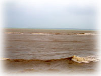目の前の海は、赤土の影響で真っ茶・・。。