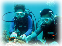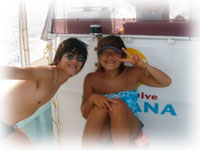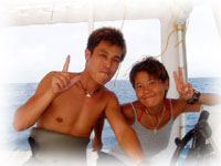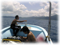 台風が去り、今日から出航ですっ!! 今日からのゲストは、6月24日(日記参照)に石垣島にて結婚式を挙げた ダイくん&リエちゃんが再来島。6月は、式後潜りザンマイの予定が、諸処のオウチ事情により、急遽帰京・・。台風に冷や冷やしつつ、見事リベンジを果たしました。新婚あつあつカップルの再来です。そして、体験ダイブでご参加のツジトモヤさん、ココロさんご夫婦。初めてのダイビングに挑戦です。そして、夫婦3組(ワタシタチ入れて・・)プラス1のゲスト、地元ナースサトコちゃん。サトコちゃん、実はナースな試験の一次突破・・おめでとうっっ!!。。