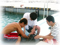 昼から、すこし深いところで海洋実習に移ります。