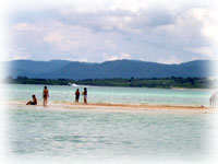ビーチ状態の島に 上陸している人がイッパイ。いいなー。