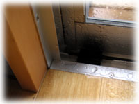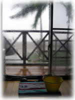 そして、ふと南側のサッシを見ると、風圧で空いた隙間から雨水が噴き出しているではありませんか・・・。ひひぇぇぇぇ・・・。絶対雨戸必要じゃーありませんかぁ・・これって・・。
