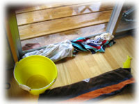 慌てて、タオルとバケツで水をくみ取ります。