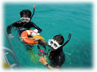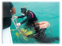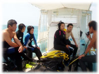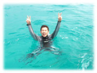でも、もっと本来の石垣島は、きれいなんですよぉ・・・。自然現象には勝てませんね・・。「海猿」を見て、シュミレートはバッチリのトモちゃんは、うまく潜れたモノの初体験にグッタリお疲れの撃沈です。そしてタイスケくん、ダイバーになってもっと石垣島の海を潜りに来て下さい。おまちしていますよん。