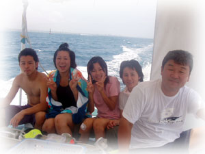 台風が去り、今日から船を下ろして出航。やっと荒い波も落ち、天気もそこそこに回復してきたけれど・・・気になる海の中。台風が去ったきのう石垣入りした前田家ご一行様。全員が石垣初体験、そしてダイビングもシュノーケリングも初体験なのだ〜。お昼前に、にぎやかに出航です。
