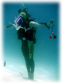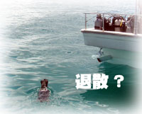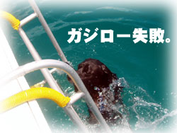 昨日は満員だった BANANA号。今日は広いです。何てったって今日は気ゲストさんがたった3名。シローさんが2名分としても、2名分スペースが空いてるぅ〜。今日は、久しぶりに黒島へ行ってみよーと言うことでGOGO。ゲストサンは、きのうに引き続きのシローさん&たまのりさんご夫妻。そしてアドバンスも残りは2本のヒラノさん。元気よく出港。しかし、今日は魔の日でした・・・。