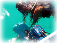 ウチノヒトがプロペラを積んでた予備のモノに交換シマシタ。 プロペラ 水中交換中・・・。 工具一つ、つるりと手を滑らせると・・・海底へ・・・落ちちゃう・・。