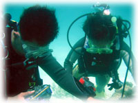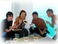 ご飯を食べたら、作業開始・・。 黒島のポイントには、もう少し・・・といったところで・・・・ワタシの操船、なんだか魔がさしたカンジ・・・最近車こすらなくなったのになぁ・・・。ゲストのみなさんびっくりさせてしまってスミマセン・・・。ああ・・・痛い出費だ・・・。しかし、立ち往生した黒島あたりのサンゴの群生は超きれかった・・。