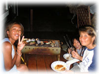 仕事を終えて夜は、あかばなーで久々にみんなが集って宴会です。お互い忙しくてナカナカ逢えないクミさん、東京での個展やマウイ行きで3ヶ月、島を留守に・・・・。
