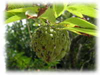 今日一緒にランチしたリカチャンが教えてくれた実。釈迦頭(しゃかとう)お釈迦様の頭みたいだから・・・であってるよね?。あまくておいしいらしい・・。。