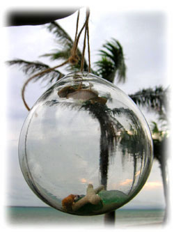 中にサンゴやシーグラスを入れて・・。