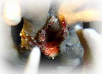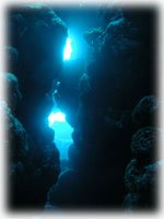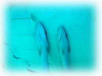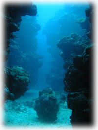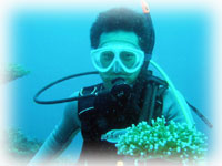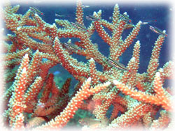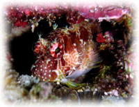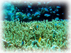 潜ってみれば、サンゴの隙間からうじゃうじゃと昼間には見えないエビやカニが顔を出している・・・。 サカナは体色を変えて寝ているし、クマノミもイソギンチャクの中に埋もれて寝ている・・。大きウニがサンゴの間からはい出して来て、魚たちは珊瑚の隙間で寝ている・・・夜は昼とは逆転の世界・・・。