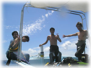スズキさん最終日となりました・・・。晴れ2日目。最初は船酔い不安・・とおっしゃってたスズキさん。今回6年ぶりのダイビングで 船に酔わない自分を発見出来て収穫アリでしたね。
