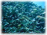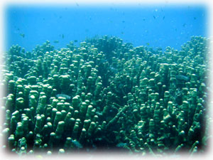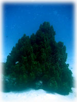 クリスマスツリーの様な、とんがりの根には、ケラマハナダイが群れてます。。