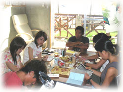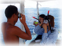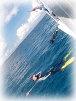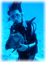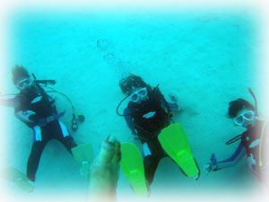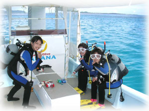 今日も美女揃いです。なんで BANANAのゲストはみんなキレイなヒトばかりなの〜??。初体験ダイブは、カオリさんとサトミさん(←この十年水に入っていないとか・・・)そして引き続きアドバンス講習のメグミさん。キャピキャピがかわいい大学生のサヤカちゃんとクミちゃん。そして昨日に引き続き、ユカコさん。