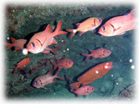 ランチの後は、3本目のキンメの根へ。 潜るのは、体育会系メグミさん。とユカコさん。 アンカーかけに行ったマッシーが、大きなマダラトビエイが寝てる〜・・と言うので見に行ったら、ホントでかいのがいたっっ。 。