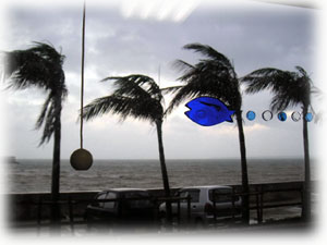 2004 9/26 台風21号接近中(>_<) 〜。 気温29℃ 水温29℃ 北西の風 くもり時々小雨