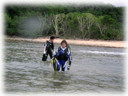 が・・・しかし、遠浅の石垣島・・。 エントリーしたモノの・・・「歩けなーい・・」 途中で、シュノーケリングに切り替えっ 。。