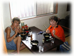 お昼からの出航なので、ワタシも加わって 少し早めにお昼ごはんを食べに行きました。。
