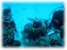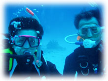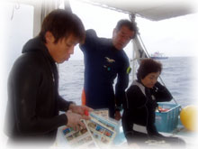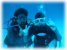 きのうのキノシタさんご夫妻、今日も張り切って潜ります。そして、今日からの参加はナントナント・・こんな偶然っ、不思議な偶然、奄美大島から来てくれたヒロキさんとヒロコさん。きのう散々キノシタさんがいつも長期滞在している奄美の話で盛り上がっていたばかり・・タイムリーすぎっ・・。 しかも、キノシタさんが出入りしていたダイビングサービスに、ヒロキさんは今、ガイド研修中。いつもキノシタさんが奄美でご一緒されていたイントラの人も共通のお知り合いの様でした。ヒロキさんは、奄美の島人、そして島人には珍しくインストラクター。今年の夏のガイドデビューを目指しているそうです。