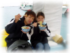 時化た海を後にして、 静かな港へ・・・。。 港でランチ。 今日はちほ特製トロトロソーキソバ。 あつあつソバで 暖まりましょー。