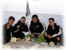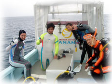 2本潜って帰港。今日のログ付けは明日にまわして、今日は宿へ直行でお送りしました。。明日あさってと、あと2日間、同じメンバーで潜りまーす。初日の今日は緊張もあって疲れたでしょう。ゆっくり休んで下さーい。明日から、時化る予想ですから・・・・・・・ぁぁぁ・・(>_<) 。