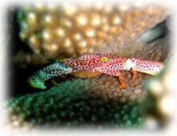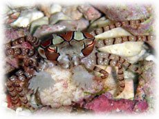 卵を抱えているアカホシサンゴガニ。。