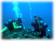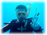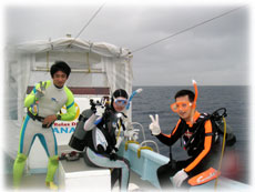 今日はとうとう雨降りでした。海も時化ていたけど、みんなゲンキ。船に酔うこともなく、2本。ずーと良かった東側の透明度。今日は少し残念でした・・・・。午後からは、今までのドンヨリがまるでウソの様に晴れ、久しぶりに太陽を見た。太陽は、人間にエネルギーをくれる・・もっと晴れておくれ〜。たけど、また夕方から曇って小雨。しかも冷えてきた・・・・。明日は寒そうな予想・・・でも、今日の3人はまたゲンキに潜ってくれることでしょう。。