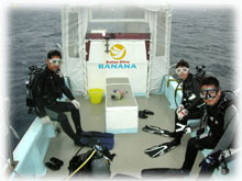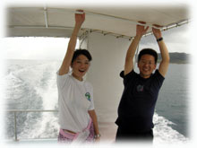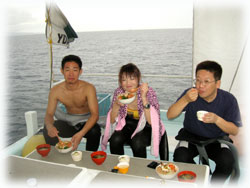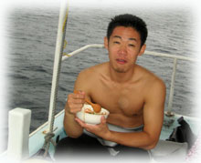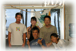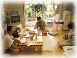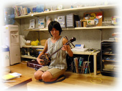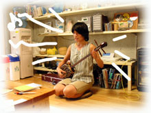 ・・・で、ログ付け後、BANANAのお店の上階にお住まいのゲスト=ジュンちゃんが、サンシンとともにやってきてくれました。