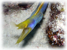 結局今日は・・・雨の一日でした・・・。ダブルパワーが効いた〜・・・。黒島もハナヒゲウツボもお初の人も多く、楽しんで頂けたようでした。カスガさん、ハナヒゲウツボを腕くらいの太さのウツボだと思っていたそう・・・。そんなのいたら、ワタシも見てみたい・・。60分オーバーのロングダイブでした。