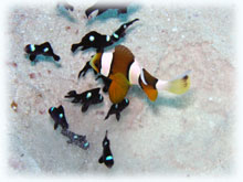 ●今日出逢った生き物たち・・・ホワイトチップシャーク・カスミチョウチョウウオの群・ハナゴンベ・グルクンの群・ヤイトヤッコ♂♀・コイボウミウシ・セダカギンポ・オオアカホシサンゴガニ・クラゲ・インドカエルウオ・ハマクマノミ・カクレクマノミ・ハナビラクマノミ(卵)・クマノミ・サンゴテッポウエビ・シライトウミウシ・アオギハゼ・ツバメタナバタウオ・アカククリ・カノコイセエビ・・の殻・サザナミフグ・アカホシカニダマシ・ナンヨウハギ・ミナミホタテウミヘビ×2個体・イソギンチャクエビ・ニセアカホシカクレエビ・コナユキツバメガイ・ニシキリュウグウウミウシ・タテジマキンチャクダイの幼魚・オビイシヨウジ・ミツボシスズメダイ幼魚・・・・などなど・・・