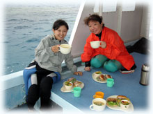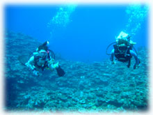 サイジョウさんは、あと少しで200本をむかえます・・。去年9月、初めてBANANAに来られたときは、150本記念だったのに・・かなりのハイペースだぁーっっ。。今度はマンタに逢えるといいですね〜。そして、取り立てダイバーだったユキさんも、もうすぐ20本。だんだん潜ることに慣れて余裕が出てこられたようです〜。