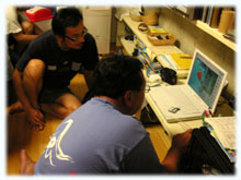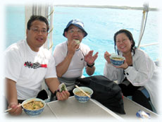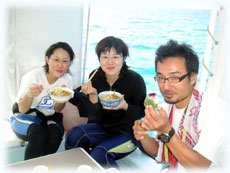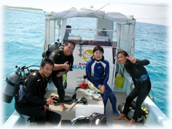 今日から、また少し忙しい日々です。今日のゲストさんは、まず7月にいらして下さったゼンさんが登場っ。今回デジカメフィールドフォトコンテスト石垣島に出品しまーす。そして地元のイケダさん。前回の8月以来のご登場。アメオトコなのに・・・あれあれ今日は晴れています・・。そして、去年の12月に来て下さったササキさん。超オキナワフリークでなんと、今年10回目の沖縄だそうですっ。いつのまにやら・・・器材一式も揃ってました。。一方・・ブランクが心配・・・というゲストさんは、ジョウシマさんとウメツさんのお二人・・。そしてケイコさん。朝のうちにに少し器材の扱いなど復習をしてリラックスしてからの出港でーす。。