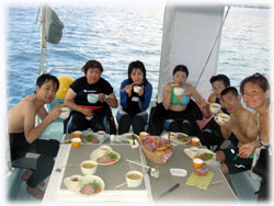 いいお天気です。明日からの天気予報はとりあえず無視して、夏の一日をたのしみましょう。今日のゲストさんは、きのうに引き続きクロサワさんご一家のノボルさん・ケイコさん・ミドリさん。そして、シズちゃん、合宿?2日のヨーコさん。そして今日到着のオオノさんが合流です。オオノさんは、ゴールデンウィーク以来の登場〜いつもどうもありがとうございます。相変わらず、巻き爪が痛そう・・・・・・・・(>_<) 。オオノさんは、シズちゃんといつも偶然一緒っっ。今日もまたまた再会です。。