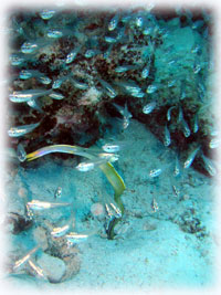 ●今日であった生き物・・・・・・・ハナゴンベ・グルクンのスゴイ群・オラウータンクラブ・アカヒメジの群・ノコギリダイの群・カノコイセエビ沢山・アカマツカサの群・サンゴテッポウエビ・イレズゼ・カスミチョウチョウウオ・クマノミ・アカククリ・ハナヒゲウツボ成魚3個体・ハダカハオコゼ白/黄色/白・リュウグウベラギンポの群・スカシテンジクダイ群・ヒメギンポSP・オビイシヨウジ・カクレクマノミ・ハマクマノミ・キンギョハナダイ・ダンゴオコゼ・デバスズメの群・サザナミフグ・ホシテンス幼魚・ヨスジフエダイの群・クロホシハゼ・クマドリテッポウエビ・イソギンチャクエビ・イソギンチャクモエビ・ウミウシカクレエビ・アカモンガラ・モンガラカワハギ・キンメモドキの群・ロボコンエビ・カンザシヤドカリ・ハナミノカサゴ・タテジマキンチャクダイの幼魚・・・・・などなど・・・。 本日も最高のダイブ日和でした。黒島は水が良くて、太陽も燦々と照っていて、ブルブルーダイブの1日。なんだかね明日から・・また冬の天気に戻る予報?そして、時化る予報・・・??こわいよー・・・・。ヨーコさんの合宿ダイブ、明日もつづくかな・・・・。シズちゃんと、クロサワさん一家は2日間のダイビングを終え、今日で最終日でした。でも、ラッキーな二組。マンタ乱舞だし、お天気も最高、透明度も最高っっ〜。。・・・・・と言うわけで、ハナちゃん(シズちゃんの相棒)っ、シズちゃんはベストダイブを堪能してしまいました・・・。でも、ホヤシリーズは見なかったぁ・・・。